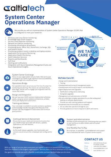 By synchronising Orchestrator with SCOM, we can develop runbooks that repair and restart components automatically if they fail or go offline.