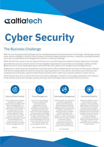 Altiatech’s Cyber Security Assessment offers an independent security review that will identify gaps and provide recommendations around areas in which your organisation may be vulnerable to cyber security threats.