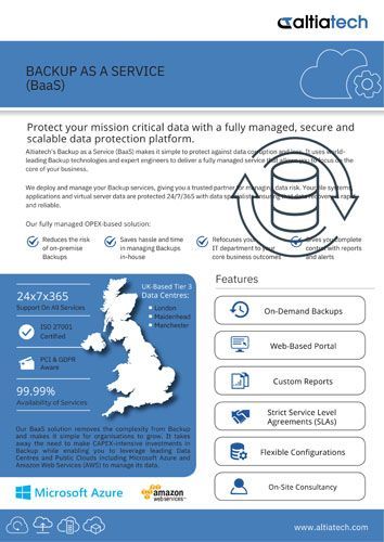 Protect your mission critical data with a fully managed, secure and scalable data protection platform with Altiatech.