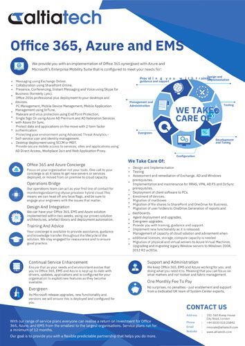 We can have your Office 365, EMS, and Azure solution implemented within two weeks, using our proven solution architectures, artefact library, and deployment automation.